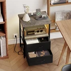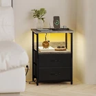 Night Stand with Charging Station, LED Nightstand with U-S-B Ports and Outlets, 2 Fabric Storage Drawers with PU Finish, Bed Side Table for Bedroom, Living Room, Rustic Brown 【LED Nightstand】- Feeling monotonous in your bedroom? Lacking a bit of life in your room? Why not try 's newly upgraded led nightstand! Our RGB lighting strips adjust multiple color, brightness levels, and various flashing modes by remote or APP as you go. Our soft strip light does not hurt the eyes. When you play music, even the LED lights will dance in sync with the beat, creating a warm and soft home atmosphere for you. Light your home with colorful led! 【Safety & Sturdy Bedside Table】- Designed for durability, this table comes with particle board, sturdy metal frames, non-woven drawers and 4 adjustable leg supports. For durability and easy cleaning, it also features a PU finish. The adjustable feet greatly enhance our nightstand's stability, even on uneven floor or carpet. 【Spacious Fabric Storage Drawers】- Three fabric drawers provide ample storage space for your personal items, such as remote controls, keys, glasses or a small amount of clothing and socks, allowing you to keep your items organized. In addition, the 2-layer wooden shelf provides additional open storage space to place lamps, clocks, photo frames or decorations on the desktop. In the living room, you can also place coffee and books next to the sofa to spend your afternoon tea time. 【Night Stand with Charging Station】- This bedroom end table comes with 2 AC outlets, 2 U-S-B ports and a 5 ft long power supply cord. You can easily connect and charge electronic devices, such as smarts, tablets or bedside lamps, all within reach. Say goodbye to the worry of insufficient sockets and enjoy a charging experience when you wake up. 【Easy to Install】 - Our nightstand measures "D x "W x "H. The product has a simple structure and comes with clear installation instructions. You only need to follow the steps in the instructions, and the installation can be completed within 15 minutes.