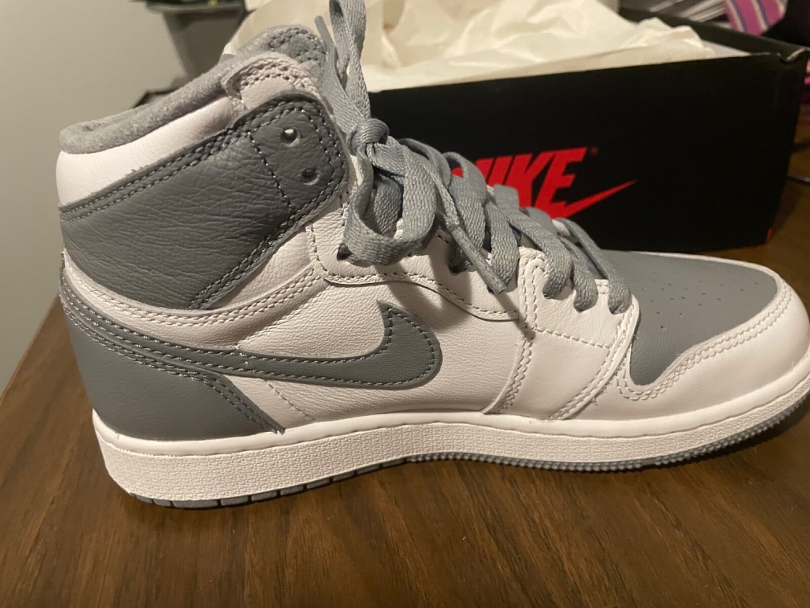 Elevate your sneaker game with these Nike Air Jordan retro 1 high top sneakers. The gray colorway and classic design make them a stylish addition to any outfit. These unisex sneakers are perfect for any adult looking for a trendy and comfortable shoe option. Crafted by Nike, a trusted brand in the footwear industry, these sneakers are made with high-quality materials to ensure long-lasting durability. With a focus on both style and functionality, these athletic shoes are perfect for any physical activity. Don't miss out on the opportunity to own a piece of the iconic Air Jordan product line.
