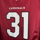 Show your support for the Arizona Cardinals with this Nike On Field NFL Jersey featuring David Johnson's #31. Made with high-quality materials and designed for comfort, this jersey is perfect for any football fan. The vibrant red color and XL size make it a standout piece for any fan apparel collection. Represent your favorite team during regular season games or simply add it to your collection of fan apparel and souvenirs. This jersey is a must-have for any Arizona Cardinals fan and is made in Guatemala with precision and attention to detail. Get yours today and show your pride for the team!