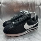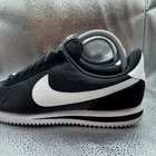 The Nike Classic Cortez Men's Black and White Comfort Shoes Sneakers in size 7.5 (UK 6.5) are a stylish and versatile option for casual wear. Featuring a low top design with lace-up closure, these sneakers offer a comfortable fit with arch support and cushioning. The breathable material and rubber outsole make them suitable for summer, fall, and spring seasons. With a classic Nike Cortez model and solid black color, these sneakers combine timeless style with modern comfort for a great addition to any man's footwear collection.