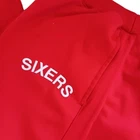 Nike warm up pants. True red with Sixers Stitched in. Size XL. Wide waistband and drawstring. Four snaps below the knee. waist drawstring 17." and stretchy inseam 32"