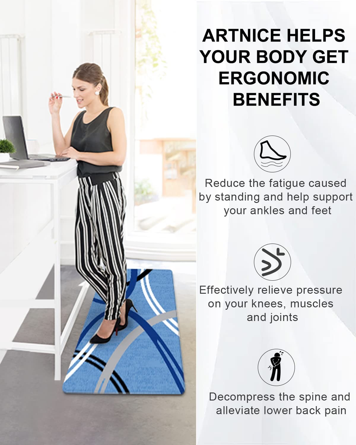 Kitchen Rugs 2 Piece, Modern Abstract Design Anti Fatigue Kitchen Mats, Memory Foam Kitchen Floor Mats Cushioned, Light Blue Safe Kitchen Mat Memory Foam for Kitchen: rug for kitchen floor is made of high-density memory foam material,which is no phathalate,no latex and no odor. The standing mat for standing desk anti fatigue is not only eco-friendly,but also durable in extended and heavy use. The package contains kitchen mat set of 2,which measured 17.3"×30" and 17.3"×47.2",both sharing a thickness of 0.4 inch Ergonomic Kitchen Floor Mat Set: foot pad for standing desk is engineered to blend soft comfort and firm support.The blue anti fatigue kitchen mat can help decompress ankles,feet,joints and muscles,further improving circulation and relieving pain. anti-fatigue kitchen mat are aimed to help you maintain good posture in the long time standing Non-slip Kitchen Rug Runner: waterproof rug runner for kitchen features in stain resistance and easy maintenance. A damp cloth or hand-held vacuum can take dirt away from the comfort kitchen mat anti fatigue. Beveled edge and non slip bottom design also makes the non slip kitchen rug suitable for various floors Stylish Kitchen Decor: Kitchen rugs and runners can easily match any home or kitchen decor with its neutral-tone style.The floor mat for standing desk not only serve as anti-fatigue kitchen mats but also work for varieties of space both indoors and outdoors, such as laundry room, office, doorway, balcony, farmhouse, and other working places. The kitchen rugs for hardwood floors will be an ideal kitchen floor mat for your family home Cushioned Floor Mat Tips: After receiving the kitchen floor mat, you can lay the anti fatigue kitchen rugs flat and wait for some time and then the kitchen mat's surface will return to a flat state.The kitchen sink floor mat underlay should be clean, flat, and dry before placing the mat on the floor