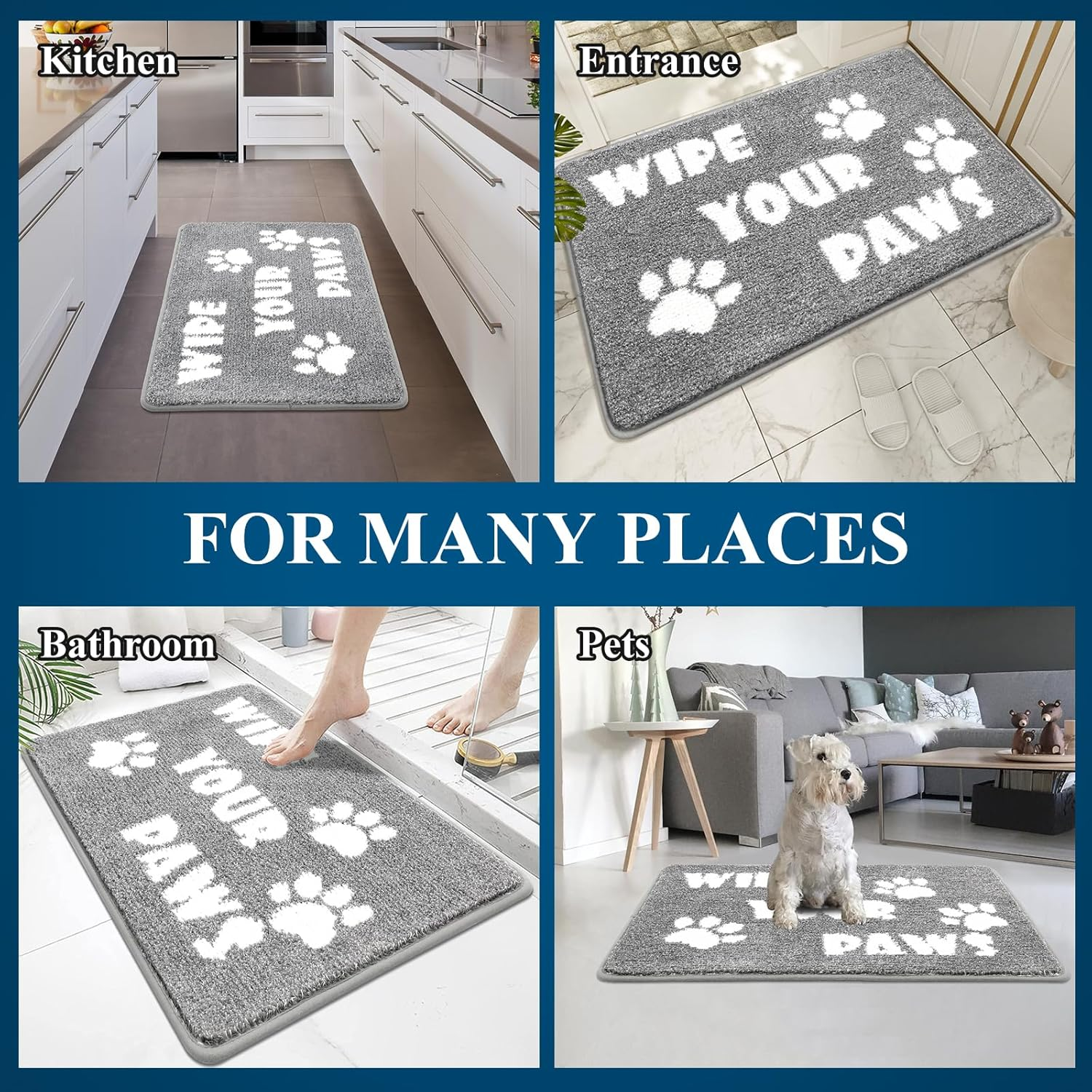This mat is a total game-changer for my entryway! It catches all the dirt and mud perfectly, stays firmly in place, and the cute dog paw design adds a fun touch. Super easy to clean and looks great in grey and white. Highly recommend!