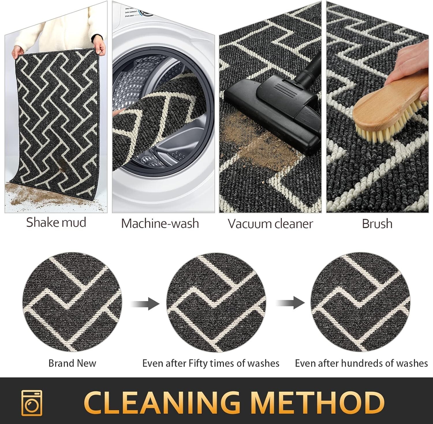 About this item Durable and Absorbent Material: This indoor doormat is crafted from high-quality polypropylene fabric with a double-layer design that effectively absorbs moisture and traps dirt from shoes, keeping your floors clean and dry. Low-Profile Design: Measuring 20"x31.5"x0.4", this entryway mat features a low-profile design to prevent doors from getting stuck, ensuring seamless entry and exit. Easy Maintenance: The unique rib fabric design facilitates easy removal of dirt and mud from shoes. This mat can be shaken, swept, vacuumed, or rinsed with a garden hose for regular cleaning, and it is machine washable for deeper cleaning (up to 86°F/30°C). Versatile Usage: Suitable for indoor and outdoor use, this doormat can be utilized as a front door mat, outdoor mat, welcome mat, entryway mat, shoe mat, or dog mat, effectively scraping off dirt, water, dust, grit, sand, mud, slush, sleet, grass, snow, and more.