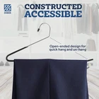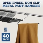 Product Description At , we understand how difficult it can be to keep a tidy home. This is why we have developed products that aid in the decluttering and organization of every home. Each item is meticulously crafted with the user and their home in mind. The end product results in items that maximize space, simplify organization, and take the guess work out of keeping a neat home. At , we strive to attend to customers matters with the utmost haste and professionalism. If you’re looking for functional home organization solutions, then is the brand for you! Why You'll Love it Non-Slip These non-slip hangers with rubber coating keep garments in place and prevent them from slipping off. The rubber coating also protects garments from creases and wrinkles Open End Design for Easy Accessibility Our open ended hangers allow quick easy off and on access when storing or taking clothes off. Users in a rush can simply remove the clothes from the hanger without having to take it off the rod. Slim & Space Saving Maximized Storage for Closets of any Size The hangers create maximized storage due to its thin frame, resulting in a neater and more organized closet. These elegantly designed hangers give once cluttered closets, a sophisticated and professional look that users will be proud to show of Dimensions Hanger from top of hook to bottom of hanger - 6 ¼” Pants Bar 14” wide Set of 40 Open Ended Pant Hangers Easy to get things on & off the hanger Hanging pants couldn’t be easier with this 40 piece set of hangers! An open-ended design allows users to quickly, and easily hang slacks, jeans, skirts, and more! The hangers are made of premium grade stainless steel and coated in rubber for a non slip grip that keeps pants in place. A chrome finished stainless steel hook with an open end for easy accessibility. Users are sure to love the functionality of these hangers! . Perfect For Towels Tablecloths Linen Scarf Ties & More Product Features Rubber Coating These hangers are coated in rubber for a non slip grip that keeps pants from slipping off, and prevents the noise of metal dangling Heavy Duty Metal Construction Our hangers for pants are constructed of strong Premium Grade Stainless Steel Anti-Rust Chrome Technology and durable chrome plated metal that effectively prevents rust and resists breakage. These sturdy slack hangers can accommodate multiple garments while resisting deformation Raised Ends With elevated ends that tilt upward, we’ve ensured that pants, skirts and other garment bottoms stay in place on the hangers rather than falling off onto the floor. Rubber Coated Edges Our one of a kind opened hangers have rubber tips fitted over exposed edges and the tip of the hook to ensure no damaging snags on clothing or injuries.