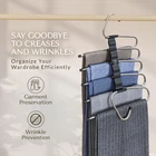 Maximize Closet Space - Transform your closet into an organized haven with our Space-Saving Pants Hangers. Each hanger features a 5-tier design, allowing you to store more clothes in less space, making it perfect for small closets or maximizing any wardrobe. Versatile & Multifunctional Hanging Options - Simplify your wardrobe with these multifunctional hangers, which offer both horizontal and vertical hanging options. Ideal for organizing jeans, trousers, skirts, scarves, and slacks. Whether you’re organizing seasonal clothing or planning outfits, these hangers adapt to your needs. Secure & Convenient Design - Our Non-Slip Multi-Layer Hangers feature rods that prevent slipping and keep clothes wrinkle-free. The open-ended design allows easy hanging and removal, making daily use quick and keeping your closet organized. Durable and Sturdy Construction - Crafted from high-grade, anti-rust stainless steel and reinforced with high-quality ABS plastic, these hangers are built to last. They can support up to 10 pairs of pants without bending, maintaining their shape and strength over time. PROMISE - At , we are committed to delivering high-quality products and exceptional customer service. We proudly stand behind our products with a no-questions-asked warranty. If you experience any issues with your product, simply reach out to us directly through the Amazon messaging system. We're here to assist you promptly with any questions, concerns, or challenges you may have.