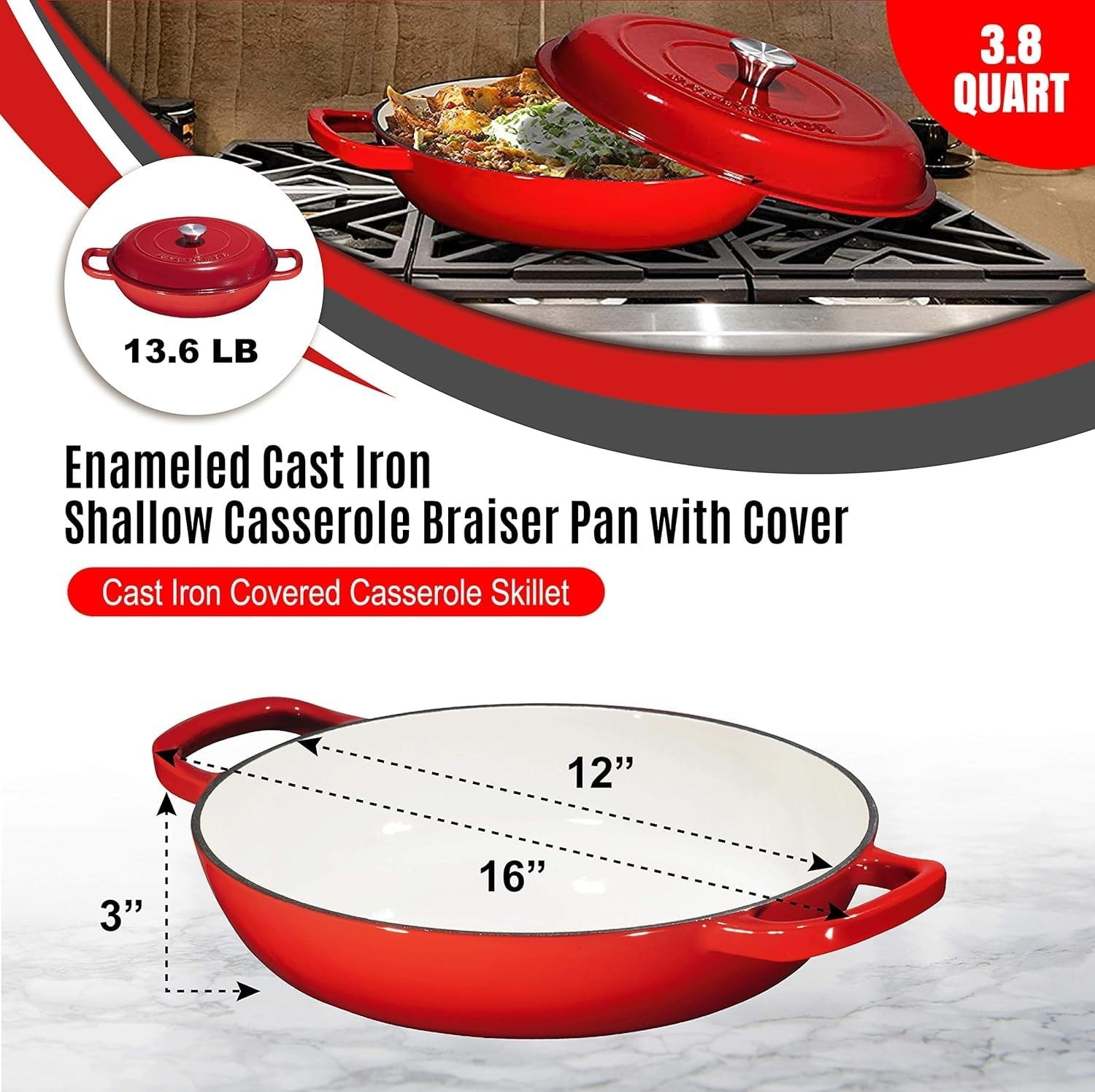 Non-Stick Enameled Cast Iron 3.8 Quart Dutch Oven - Elegant Gradient Red Finish ‹ › ‹ › ‹ › ‹ › ‹ › ‹ › ‹ › ‹ › ‹ › ‹ › ‹ › Non-Stick Enameled Cast Iron 3.8 Quart Dutch Oven Elegant Gradient Red Finish Features: Generous 3.8 quart capacity, perfect for soups, stews, and roasts. Doubles as a braiser pan for baking or frying meals with effortless elegance. Designed for slow, even heat, maintaining a consistent temperature for hearty dishes. Compatible with all cooktops: gas, electric, ceramic, and induction, with an oven-safe rating up to 500°F. Features a smooth, acid-resistant enamel interior that is non-reactive and extremely easy to clean. An eye-catching gradient red finish, adding both charm and style to your kitchen. Benefits: Reliable performance for daily cooking, perfect for both novice and seasoned chefs. Even heat distribution ensures perfectly cooked meals every time. Ideal for one-pot family dinners, simplifying meal prep. Stain-resistant and odor-free; a pleasure to clean and maintain. Elegant design enhances kitchen aesthetics while being functional. Why choose our Dutch Oven? This Non-Stick Enameled Cast Iron Dutch Oven is more than just a cooking vessel; it’s a beautiful and functional centerpiece for your kitchen. Its elegant gradient red finish combines style and performance, perfect for impressing guests or elevating your home-cooking experience. Whether you are slow-cooking a comforting stew or baking a delicious bread, trust this dutch oven to deliver mouth-watering results while making cleanup a breeze. Elevate your culinary adventures and experience the fusion of elegance and practicality – order your Non-Stick Enameled Cast Iron Dutch Oven today! Shipping Free & Fast Shipping - We offer free shipping to most of the USA with a normal delivery time of 3-7 days. However, due to the current situation, additional delivery time (up to 3 weeks) may be required for some items. Alternative Carriers - We may use alternative carriers (e.g. USPS, FedEx, UPS, etc.) to ensure your package arrives safely and on time. Due to the use of multiple carriers, we are unable to provide a tracking number automatically. Handling Time - Orders are processed and shipped within 1-2 business days of receiving cleared payment. Shipping Restrictions - Shipping to Alaska, Hawaii, Puerto Rico, Guam, and other US territories may incur shipping charges or delivery restrictions. Please contact us before ordering, or your order can be refunded/cancelled. State Restrictions - There may be restrictions based on your state of purchase. For example, certain items may not be shipped to California due to state regulations. Contact for Tracking Updates - If you require tracking updates or have any concerns about the delivery of your order, please feel free to contact us, and we will be happy to assist you. Return 30-Day Hassle-Free Returns - We want you to be completely satisfied with your purchase. If you are not, you can return the item within 30 days of receiving it for a full refund or exchange. Easy Return Process - To start a return, simply contact us and we will provide you with a prepaid return shipping label and detailed instructions. Restocking Fee - There are no restocking fees for returns. However, the buyer is responsible for return shipping costs if the return is not due to a seller's error. Refund Processing Time - Refunds will be processed within 5 business days of receiving the returned item in its condition. Payment We accept all major credit cards, PayPal, and Apple Pay for your convenience. Your payment information is secure and encrypted to ensure a safe and seamless transaction. Please complete your payment within 3 days of purchase to avoid any delays in shipping. Feedback Your feedback is extremely important to us. We strive to provide the best products and customer service possible. If you are satisfied with your purchase, please take a moment to leave us a positive review. If you have any concerns or issues with your order, please contact us before leaving negative feedback. We are committed to resolving any problems and ensuring your satisfaction. Contact Us If you have any questions or concerns, please feel free to out to our customer support team. You can contact us through the eBay messaging system. We are available Monday to Friday, 9:00 am to 5:00 pm EST, and we will do our best to respond to your inquiry within 24 hours. Buy it now and enjoy a pleasant shopping experience! Item Diameter: 14.29 Capacity: 3.8 quarts Item Width: Dutch Oven Item Length: Dutch Oven Item Weight: 12.35 ounces Heat Resistance: 500°F Item Depth: 3.31 inches Unit Quantity: 1 Stove Type Compatibility: Electric,Gas,Induction,Ceramic Set Includes: Lid Material: Cast Iron Features: Easy to Clean,Oven-Safe,With Lid Type of Oven: Electric,Gas,Induction Type: Dutch Oven Color: Gradient Red Surface Coating: Enameled Shape: Round Number of Items in Set: One-Piece Unit Type: Unit