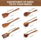 Multi-functional 6-piece Kitchenware Set--Our Wooden Kitchenware Set comprises 6 essential cookware items, including a spatula, slotted spatula, skimmer, turner, ladle, and salad spoon. These Wooden Kitchen utensils cater to the fundamental requirements of cooking, whether it involves frying, stir-frying or making soup. They are designed to meet your culinary needs with efficiency and versatility. 100% Natural Teak Wood--Crafted from 100% teak, meticulously cut and polished from a single piece of teak, this wooden kitchen utensils are both Durable and Lustrous. This Non-toxic Wooden Utensil Set are suitable for everyday use without the concern of easily being damaged. Non-stick and No Scratches--Our Wooden Spoons Set are perfect for use with non-stick pans. Each Wooden Spoon is Meticulously Polished by skilled craftsmen to ensure a smooth surface that will not cause any damage or scratches to your non-stick pan. Easy to Clean and Store--For optimal preservation and to maintain the aesthetic appeal of the Teak Wood Kitchenware, we recommend hand-wash with a mild soapy water. It is crucial Not To Soak the Exquisite Spoon. Ensure that the Premium Cooking Utensils are completely dry before storing, as this process can extend the lifespan of these spoons. Ideal for Gift and After-sales Guarantee--We offer an exquisite gift box, perfect for Friends or Family who love cooking or appreciate High Quality Wooden Kitchenware. We guarantee 100% satisfaction with our after-sales service. If you have any issues with your purchase, please contact us immediately so we can address and resolve them promptly. Product Description The video showcases the product in use. The video guides you through product setup. The video compares multiple products. The video shows the product being unpacked. 1 Kitchen Organization 2 Daily Maintenance 3 Product Details 4 Premium Material 5 Multiple Functions Compare AIUHI Wooden Utensils Set Add to Cart Add to Cart Add to Cart Add to Cart Add to Cart Add to Cart Customer Reviews 4.4 out of 5 stars 51 4.6 out of 5 stars 74 4.7 out of 5 stars 46 4.2 out of 5 stars 52 4.5 out of 5 stars 83 4.7 out of 5 stars 70 4.5 out of 5 stars 71 Price $29.99 $ 29 . 99 $39.99 $ 39 . 99 $36.98 $ 36 . 98 $37.98 $ 37 . 98 $37.99 $ 37 . 99 $25.99 $ 25 . 99 — Brand AIUHI AIUHI AIUHI AIUHI AIUHI AIUHI AIUHI Material Teak Wood Teak Wood Teak Wood Teak Wood Teak Wood Teak Wood Teak Wood For Nonstick Cookware ✔ ✔ ✔ ✔ ✔ ✔ ✔ Hand Wash Recommended ✔ ✔ ✔ ✔ ✔ ✔ ✔ Amazon's Choice ✔ ✔ ✔ ✔ ✔ ✔ ✔ Heat Resistance 572 ºF (300 ºC) 572 ºF (300 ºC) 572 ºF (300 ºC) 572 ºF (300 ºC) 572 ºF (300 ºC) 572 ºF (300 ºC) 572 ºF (300 ºC)