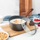 Swiss Non-Stick Coating - Swiss ILAG nonstick granite coating, SGS approved. PFOA free, smokeless, safe & healthy. Cooking with little oil for healthy diet. Suitable For All Stoves - High magnetic conductive stainless steel base allows the sauce pan to work on all cooktops, including induction. The core of small induction sauce pot is made of cast aluminum, which is sturdy and long-lasting. Heats up quickly and evenly. Versatile and Convenient - Size: 6.3" diameter, 3.4" deep, 1.5 Quart. This 1.5 quart sauce pot for grill is ideal for small portions of soup, sauces, oatmeal, and grins. Ideal Size for 1-2 people meal and easy for storage. Unique lip rim design of the milk pan allows drip-free pouring. Glass Lid & Stay-cool Handle - Long-lasting tempered glass lid makes this small induction saucepan with lid convenient to see the cooking status and limits splashes on your stove. Woodgrain bakelite handle is comfortable to grip and stays cool while cooking. Oven safe to 302°F. Easy To Clean - Nonstick and no rivets, this sauce pot is super easy to clean. Simply wipe it over with a sponge and warm soapy water. Make your daily food intake easier to make.