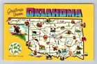 OK-Oklahoma, Scenic Greetings, Landmarks On Map, Vintage Postcard