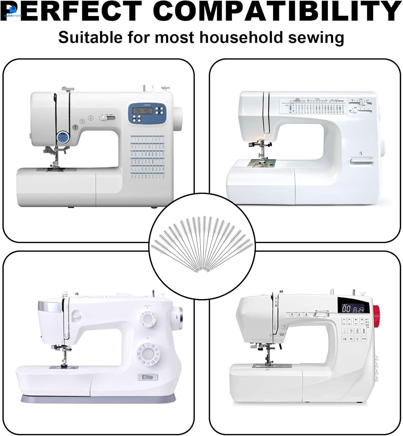 Sewing Machine Needles, Universal Sewing Machine Needle, ONEHERE Compatible with Singer, Brother, Janome, Varmax, Sizes HAX1 65/9, 75/11, 90/14, 100/16, 110/18 (50 PCS) Description Are you looking for a high-qualityhousehold sewing machine needle?Our sewing machine needles are compatiblewith most household sewing machines or old sewing machines, such as Singer,Brother, Janome, Varmax, Kenmore, etc. they are ideal for quilting, sewing,home decor projects. Whether you are professionals or beginners,you will find this kit convenient and complete, especially for DIY hand set is also a perfect gift for yourrelatives, friends, families, mother and wife.Product Specification:Material: Top quality high strength steelNeedle Size: 1.54 inColor: SilverPackage Includes: 10* HAX1 65/9: suitable for thin fabrics(such as real silk fabrics)10* HAX1 75/11: suitable for medium andthin fabrics (such as shirt fabrics)10* HAX1 90/14: suitable for medium andthick fabrics (such as windbreaker and jacket fabrics)10* HAX1 100/16: suitable for thick fabrics(such as jeans fabric)10* HAX1 110/18: suitable for thickerfabrics (such as thick cotton fabrics)5 storage tubes3 bobbins1 transparent box for storage Features: 【Perfect Compatibility】ONEHERE compatible with most household sewing machines or old sewing machines, such as Singer, Brother, Janome, Kenmore, etc. NOTICE! Not suitable for industrial large sewing machines. 【Value Pack Set】 This set comes in five sizes: 65/9, 75/11, 90/14, 100/16, 110/18, 10 needles per size, 50 needles in total. It also includes 3 bobbins, 5 storage tubes (random color) and 1 transparent box for storage. 【High Quality Material】This machine needles are made of top quality high-strength steel, high hardness, sharp needle tip, smooth needle hole, not easy to bend & skip needle, and long service life. 【Suitable Multiple Fabrics】Suitable for thin fabrics such as tulle, silk (size: 65/9); medium-thin fabrics such as shirts, satin (size: 75/11); ordinary fabrics such as windbreaker (size: 90/14); thick fabrics such as jeans(size: 100/16); thicker fabrics such as thick coats(size: 110/18) . 【Perfect Gift 】The set is a perfect gift for your relatives, friends, families, mother and wife, whether they are professionals or beginners, they will find this kit convenient and complete, especially for DIY hand stitch lovers. Product Details: Brand: ONEHERE Item Length: 1.54 Inches Compatible Devices: Domestic Sewing Machine Compatible Material: Tulle, Silk, Shirt, Satin, Windbreaker, Jeans, Thick Coats Point Type: Sharp Point Item model number: HAX1 Item Weight: 1.41 ounces Manufacturer: ONEHERE Country of Origin: China Handling We will ship all orders within 3 business day of payment. Delivery We Do Not Ship Outside of the Continental US. Return Policy All items qualify for returns within 30 days of receipt. Buyer is responsible for return shipping on any item that is not damaged. Feedback We take our reputation seriously, we buy and sell online, so we understand the value of trust. If you are unsatisfied with your order, please contact us and we will work with you to resolve it to your satisfaction.