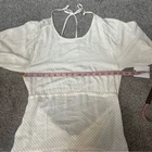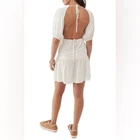 O’Neill Alta Dot Print Open Back Minidress NEW with tags Size Large Color: Winter White True to size. XS=0, S=2-4, M=6-8, L=10-12, XL=14. A perfect pin-dot print covers this chic open-back mini styled with a ruffled skirt and elbow-length puff sleeves. Jewel neck Elbow-length sleeves 95% viscose, 5% elastane DSTS