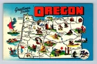 OR-Oregon, Scenic Map Greetings, Landmarks, Vintage Postcard