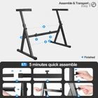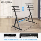 UNIQUE Z-FRAME- This stand was designed to be adjustable, allows you to properly align your piano. What makes the Z style stand so versatile is its ability to not only adjust to the height of the musician, but also to the width of the piano.This stand's heavy-duty construction supports the heaviest musical instruments and gear LARGE ADJUSTMENT RANGE - the height can be adjusted between 28.5inches/72.5cm-40inches/102cm (after installing the wheels), and the width can be adjusted between 24inches/61cm-36inches/91.5cm. It can be used according to the height of the performer and the width of the piano, and is suitable for most brands of piano keyboards,whether standing or sitting, adult or child, it can be adjusted to the appropriate height FRIENDLY DESIGN - there is a non slip foam pad on the armrest surface of the keyboard rack, which can fix the keyboard in place to prevent sliding when you play. They also provide a soft surface for the keyboard to prevent scratches from forming on the body HEADPHONE HOOK & FIXING STRAP - The equipped headphone hook can be used to place other items such as headphones, better assisting your performance. The fixing strap can be screwed to the underside of the keyboard or piano to better secure your piano or keyboard for additional stability and protection WIDELY USED - Made of high-quality metal materials, it is durable and suitable for 54, 66, and 88 key keyboards, including electric piano, electronic organ, digital keyboard, MIDI keyboard, etc. It is compatible with major keyboard brands on the market. Suitable for use on stage, in studios, at home, in music scenes, etc