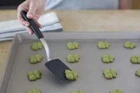 OXO Good Grips Silicone Cookie Spatula, Gray, 3 inches ✓ Free 30 Day Returns ✓ Free Shipping Spatula is the ideal size for lifting cookies from cookie sheet Made of silicone bonded to flexible stainless steel Rounded corners for scraping sticky dough out of spoons Angled handle keeps hands away from food; safe for nonstick cookware Heat resistant to 600 degrees f; dishwasher-safe The Oxo Good Grips Cookie Spatula combines the strength of stainless steel with the advantages of silicone. The silicone outer layer, which is heat resistant to 600 Fahrenheit and safe for non-stick cookware, is bonded to a flexible stainless steel core for added stability. The Spatula’s thin, flexible edge glides easily beneath all foods and is the perfect size for getting between cookies on a crowded baking sheet or removing one brownie at a time from the pan. The rounded corner is great for getting sticky cookie dough out of the spoon and the angled handle keeps your hand away from fragile foods and hot dishes. The Cookie Spatula has a soft, comfortable, non-slip grip and is the perfect companion to non-stick cookware and bakeware.
