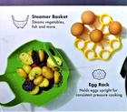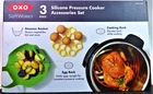 OXO Softworks Silicone Pressure Cooker 3 Pc Egg Rack Steamer Basket Cooking Rack Product Details: NEW In Box OXO Softworks Silicone Pressure Cooker Set Includes: Egg Rack, Steamer Basket, & Cooking Rack Pictures are of the actual item you will recieve. Check out our other items! Thank you for shopping with us!
