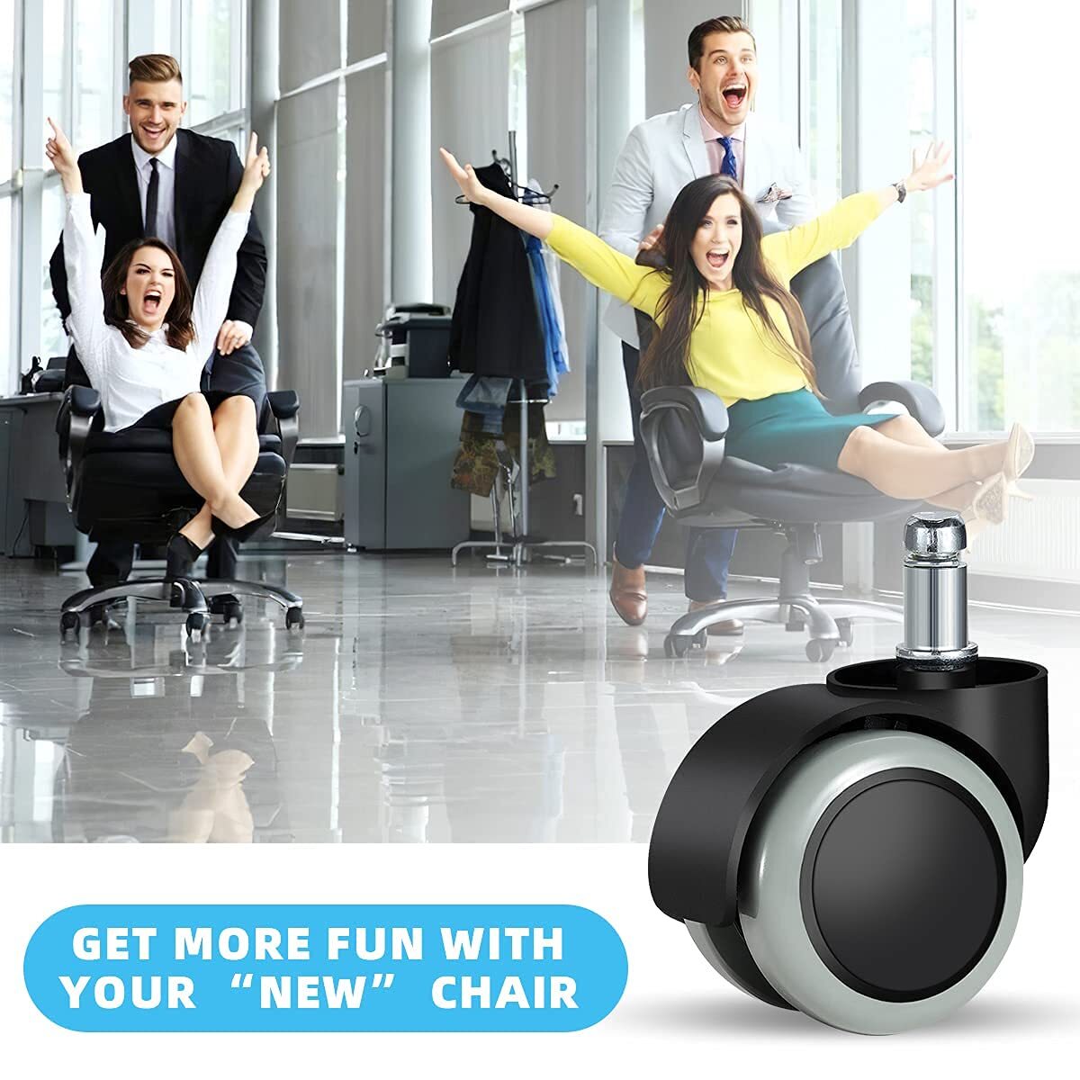 Office Chair Caster Wheels Replacement(Set of 5) for Hardwood Floors and Carpet- Heavy Duty Caster Support up to 1000bls, Office Rubber Chair Wheels,2 inch,Universal Size (Grey) Office Chair Caster Wheels Replacement(Set of 5) for Hardwood Floors and Carpet- Heavy Duty Caster Support up to 1000bls, Office Rubber Chair Wheels,2 inch,Universal Size (Grey) Description Is it troublesome because the chair wheels always make a clicking sound? Have you changed the wheels of your chair many times, making you feel exhausted physically and mentally? We have developed this unique and stylish wheel to fit most standard office and computer chairs and make your work easier. These casters we developed solve all the common problems of chair wheels and provide: smooth and silent rolling, Scratch-free floor, high load-bearing capacity (1000 lbs), easy installation and years of durability Scratches, scuffs, stuck wheels and noisy squeaks will be a thing of the past with our rubber caster wheels on your chairs. Install them quickly and easily (no tools required) simply pull off the old and snap in the new and you’re ready for sturdy support and stylish presentation. To ensure proper floor protection, floors should be kept clean and free of debris such as dirt, sand, or anything that can damage the floor surface if rolled over. Package included: Office caster x 5 Specification: Maxi weight capacity:1000lbs Color:Black Suitable floor : Hardwood /Laminate /tiles/ Others Features High Quality: The office chair casters are made of high-quality polyurethane, wear-resistant, light weight, easy to replacement and use, these casters can protect hardwood, laminate, ceramic tiles, slate and all other hard material floors from damage and scratches Applicability: Floor protection rubber office chair casters, suitable for most existing office chair models(salon chairs, executive chairs, work chairs, rolling stools) , easy to slide on the hard floor made of carpet and polyurethane material, very suitable for home or office use, and can be used for a long time Move Smoothly and Quietly: The office chair casters are always firm and easy to control when rolling. Five chair wheels are enough to support 1000 LBS, which is safe for a big man sitting on a rolling office chair. It is a good choice to choose our wheelchair wheels to upgrade your chair and bring you a quiet working environment Easy Installation: Quick and easy installation. The universal standard size can be used as a replacement wheel for most work chairs and stools. Just pull out the old wheel and pop it out, then push the rod of the new office chair wheel into the slot until it is firmly fixed. It's changing into a new chair High-quality Casters: This is a quiet/durable/sturdy office chair caster. Able to work well in the office Return Policy ⦿ All our products come with a 30-Day Return Policy. If you would like to return your item and you are within 30 days of the purchase, and it is still in its original condition, you can return the item by contacting us through eBay messaging. ⦿ If you are not 100% satisfied, please let us know the Detailed Problem. We will give you a 100% satisfactory solution. ⦿ If you received an incorrect, damaged, defective, or item not as described, contact us for a partial/full refund or replacement on our cost. ⦿ Free Shipping and Free Return 30-Days Money Back Guarantee. ⦿ For all returned products, buyers MUST contact us for the returning address. Shipping Policy ⦿ We do not ship to a different address. We will ship to the address you provide on eBay only. Please check your address before purchase. ⦿ It should take 3-5 business days for the product to reach your destination. ⦿ If the product doesn't reach your destination within the time limit, please give it an additional 1-2 business days in case of postal delays and/or possible technical issues. ⦿ We use a selection of shipping services such as UPS, FedEx, USPS, etc. ⦿ We ship only to the 48 contiguous states of America. We do not ship to Hawaii, Alaska, US Protectorates, APO/FPO addresses. Local pickups are not offered. ⦿ If it takes any longer than that, please do not hesitate to contact us to resolve the issues. Contact us ⦿ Please contact us via eBay message. Your message will be replied within 1 business day. For any queries, please feel free to contact us, we will get back to you as quickly as possible. ⦿ Customer 100% satisfaction is our first priority and goal. We are always working hard to maintain high standards of excellence and resolve your problem in the best way. So your POSITIVE FEEDBACK is very important. ⦿ If you have any problem with the item, please feel free to let us know before leaving your feedback. We will try our best to solve your problem. About us We are here to give you quality products, competitive pricing, and amazing service to make sure you get the best deal online. Thank you for your business and the opportunity to serve you.