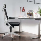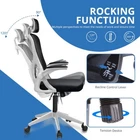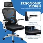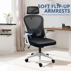 【Ergonomic Design】This reliable ergonomic office chair provides 5 supporting points(head/shoulder/back/ hips/ hands) and an proper lumbar support, allowing you to maintain the correct sitting posture for a more comfortable experience, releasing pressure and relieving shoulder and neck pain from long hours of work.. This office chair as a simple extension to your everyday work, which is perfect for everyday. Sturdy and supportive, this executive office chair holds up to 300 lbs. 【Breathable Mesh Fabric】The executive office chair is made of high-quality breathable polyester mesh that allows airflow to keep you cool and comfortable. Stout Y-bracket backrest, soft and thickly wrapped adjustable armrests and anti-collapse high-density pure nature sponge soft cushions perfectly prevent the accumulation of sweat and heat, which will help you feel more comfortable in jobs that require long time sitting. 【Flexible Adjustable Functions】The rolling swivel computer chair is built with adjustable heigh: 10cm/3.9inch lift up and down, 5cm/2inch adjustable headrest(30° flip up) and backrest, 90-120° tilt adjustment, 90° flip-up handrail and 360° free rotation, supporting shoulder, back, waist and coccyx relaxation. Upgraded adjustable headrest and lumbar support, widened backrest and high-density armrests, which enhance ergonomically tailored comfort, to meet the needs of work and leisure time. 【Reliable & Durable Chair】The comfortable office chair uses quiet PU castors, sturdy three-stage air rod, and a thickened explosion-proof seatpalte with strong bearing capacity have improved safety and stability, which give you more comfort and double coverage. All the details make this desk office chair use longer. What's important, silent casters effectively protect the floor, so don't worry about disturbing your mood.