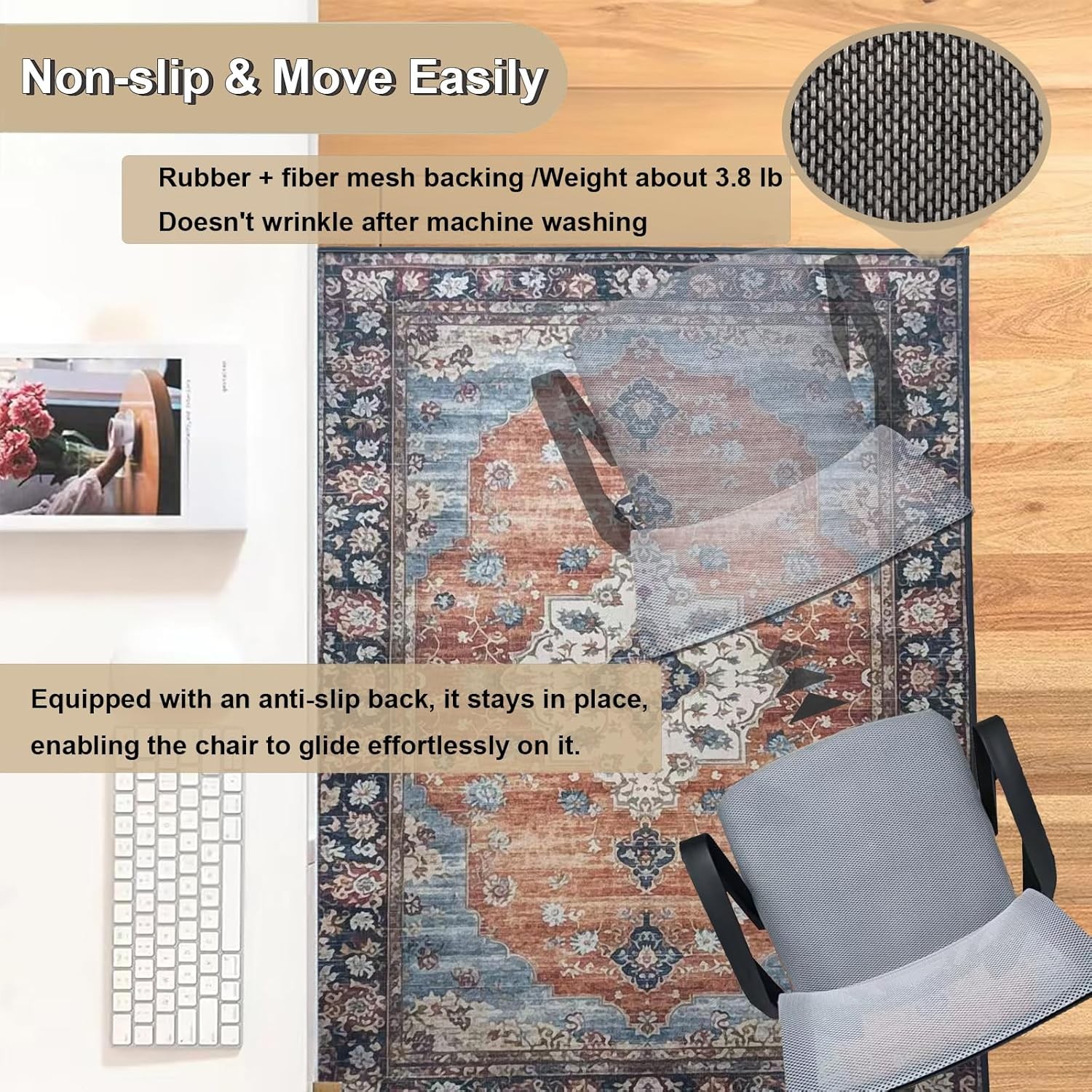 Free eBay listing template designed by dewiso.com Office Chair Mat for Hardwood Floor, 36x48 inches Heavy Duty Desk Chair Mat for Hard Wood, Non-Slip Tile Floors Protector for Computer Chairs FREE AND FAST SHIPPING! About this item Protect Your Hard Floors: This chair mat is tailor - made for office and computer chairs. It serves as a reliable protector, shielding your floors from scratches and wear. Whether you have a hardwood floor, tile or laminate in your office, this versatile chair mat has got you covered. Non-Slip Rubber Backing: This hard - floor office chair mat comes with an anti - slip back. It firmly stays in place, preventing any unwanted sliding and ensuring stability as you work. Moreover, its reticulated bottom cuts down on the noise when the chair rollers move across it. Easy to Clean: Cleaning your office chair mat is a breeze. Simply wipe with a cloth or use a vacuum cleaner to remove any dust or debris. For deeper cleaning, machine - wash the desk chair mat to keep it looking great. Durability: Beyond its stylish pattern, the upper layer is crafted from highly wear - resistant materials. It endures daily roller wear and tear, maintaining structure and function, making it perfect for long - lasting floor protection. Ideal if you want to protect your office floor without constant replacements. Purchase with Peace of Mind: The office chair mat has a woven polyester surface and a phthalate - free TPR rubber backing, creating a healthy indoor space. The chair mat are not only safe for use but also eco - friendly, as they're made from recyclable materials. If you're not satisfied with your chair mat, reach out to us directly, even past the Ebay return period. Product We offer a 30-Day Return Policy on items which you are not completely satisfied with. You have the option for a full-refund or an exchange of the item. No returns are available on items shipped outside of the US . Shipping We offer Free Shipping to the US and ship within 2 business days of payment, usually sooner. We use UPS express shipping. That's why your products are usually delivered within 3 days . Contact We try our very best to make sure every customer is completely satisfied. If there's a problem , message us! We're happy to help. 24/7 live chat available.