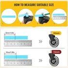 SPECIFICATION - Shaft diameter: 11 mm (7/16 inch) - Shaft length: 22 mm (7/8 inch) - Wheel diameter: 75 mm (3 inch) - Overall height: 125 mm (5 inch) - Wheel width: 25 mm ( 1 inch) - Total capacity: 200 kg (440 lb) - Wheel material: Rubber on polyurethane FEATURES - Robust construction for high load capacity - Swivel head for continuous, uninterrupted movement - Durable wheels with extremely low wear - Ergonomically friendly wheels with optimized rolling resistance to reduce the load for the user - Ideal for carts and storage cabinets, display stands, work table, carts etc. WHAT YOU CAN GET - 5 x Office Rolls SMOOTH AND QUIET GLIDING: Precision ball bearings and a soft polyurethane wheel-shell make chair rolling and swivel silky smooth and quiet on any surface. Ideal for shared office spaces, professional gaming environments or even near your sleeping babies in the home office. SAFE FOR ALL FLOORS: Covered with a high quality, extra thick, non-marking soft polyurethane layer office chair rollerblade wheels are avoiding to scratch or leave marks on any surface (including hardwood, carpet, tile, laminate and more). STURDY HEAVY DUTY STRUCTURE: Heavy duty caster wheels steel casing, the maximum load capacity of wheels-set of 5 is up to 200kg and has passed the highest level TUV test. EASY INSTALLATION: Plug-and-play, no tools required! Simply pull out your old chair castors and insert the new ones. So you can start experiencing smooth and quiet gliding! STEM SIZE AND : Stem size with 7/16" (11mm) diameter x 7/8" (22mm) length, fits for most chairs EXCEPT FOR IKEA. 1 year , free replacement. Please do not hesitate to contact us if you need any assistance.