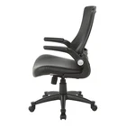Office Star Ventilated Black Screen Back Fully Adjustable Manager's Office Chair with Padded Flip Arms and Nylon Base, Black Faux Leather Product Details Color: Black Faux Leather Brand: Office Star Products MPN: EM60926P-U6 UPC: 090234494829 EAN: 0090234494829 Brand: Office Star Products Color: Black Faux Leather Product Dimensions: 24"D x 25.75"W x 42.5"H Back Style: Screen Back Special Feature: Adjustable Height, Ergonomic, Arm Rest, Seat Lock, Cushion Availability Brand: Office Star Products Color: Black Faux Leather Product Dimensions: 24"D x 25.75"W x 42.5"H Back Style: Screen Back Special Feature: Adjustable Height, Ergonomic, Arm Rest, Seat Lock, Cushion Availability Product Care Instructions: Spot Clean Unit Count: 1.0 Count Recommended Uses For Product: Office, Drafting, Reading, Gaming Maximum Weight Recommendation: 275 Pounds Style: Traditional Pattern: Solid Finish Type: Nylon Room Type: Office, Game Recreation Room, Classroom, Library, Study Room Age Range (Description): Adult Included Components: Chair, Caster (5), Hardware, Assembly Instructions Theme: Attribute not applicable for product Shape: L-Shaped Model Name: Ventilated Arm Style: Padded Flip Surface Recommendation: Indoor Seat Back Interior Height: 22 Inches Furniture base movement: Swivel Indoor/Outdoor Usage: Indoor Furniture Finish: Black Seat Height: 21.25 Inches Seat Depth: 19 inches Fill Material: Foam Cushion Style: Padded UPC: 090234494829 Manufacturer: Office Star Products Item Weight: 23 pounds Country of Origin: China Item model number: EM60926P-U6 Date First Available: April 12, 2021 A breathable screen back with built-in lumbar support gives this chair its modern attitude while keeping you cool throughout the day One-touch pneumatic seat height adjustment, locking tilt control and adjustable tilt tension ensure youre comfortable and in an ergonomic position for maximum productivity This managers chair also features an attractive ultra-modern base with dual-wheel carpet casters that ensure effortless mobility Overall size: 25.75 W x 24 D x 38.75-42.5 H Approved for commercial use Everyone needs a smart, stylish chair to support them throughout the day and the Screen Back Manager's Chair by Office Star with padded flip arms is sure to please. This high-style look includes a supple, padded seat and adjustable padded flip arms for hours of plush comfort. A breathable screen back with built-in lumbar support gives this chair its modern attitude while keeping you cool throughout the day. One-touch pneumatic seat height adjustment, locking tilt control and adjustable tilt tension ensure you’re comfortable and in an ergonomic position for maximum productivity. This manager’s chair also features an attractive ultra-modern base with dual-wheel carpet casters that ensure effortless mobility.