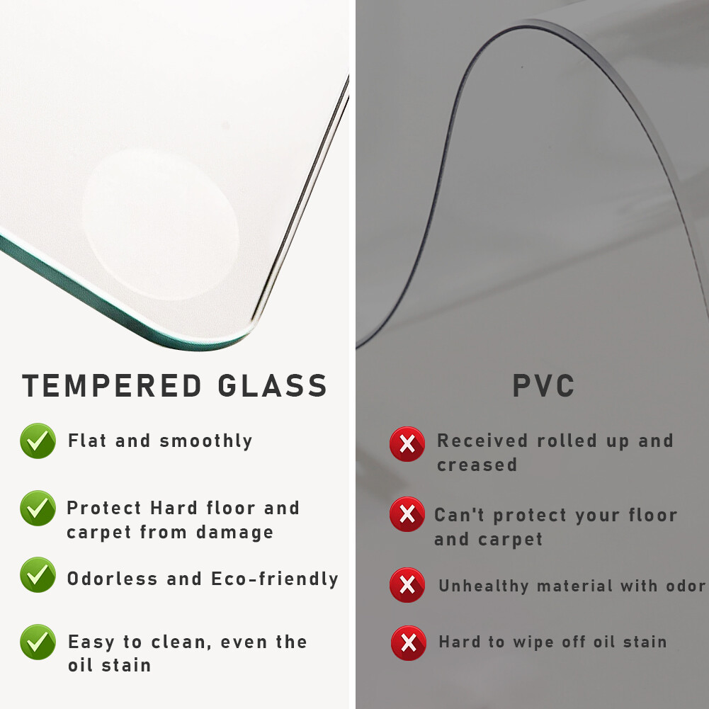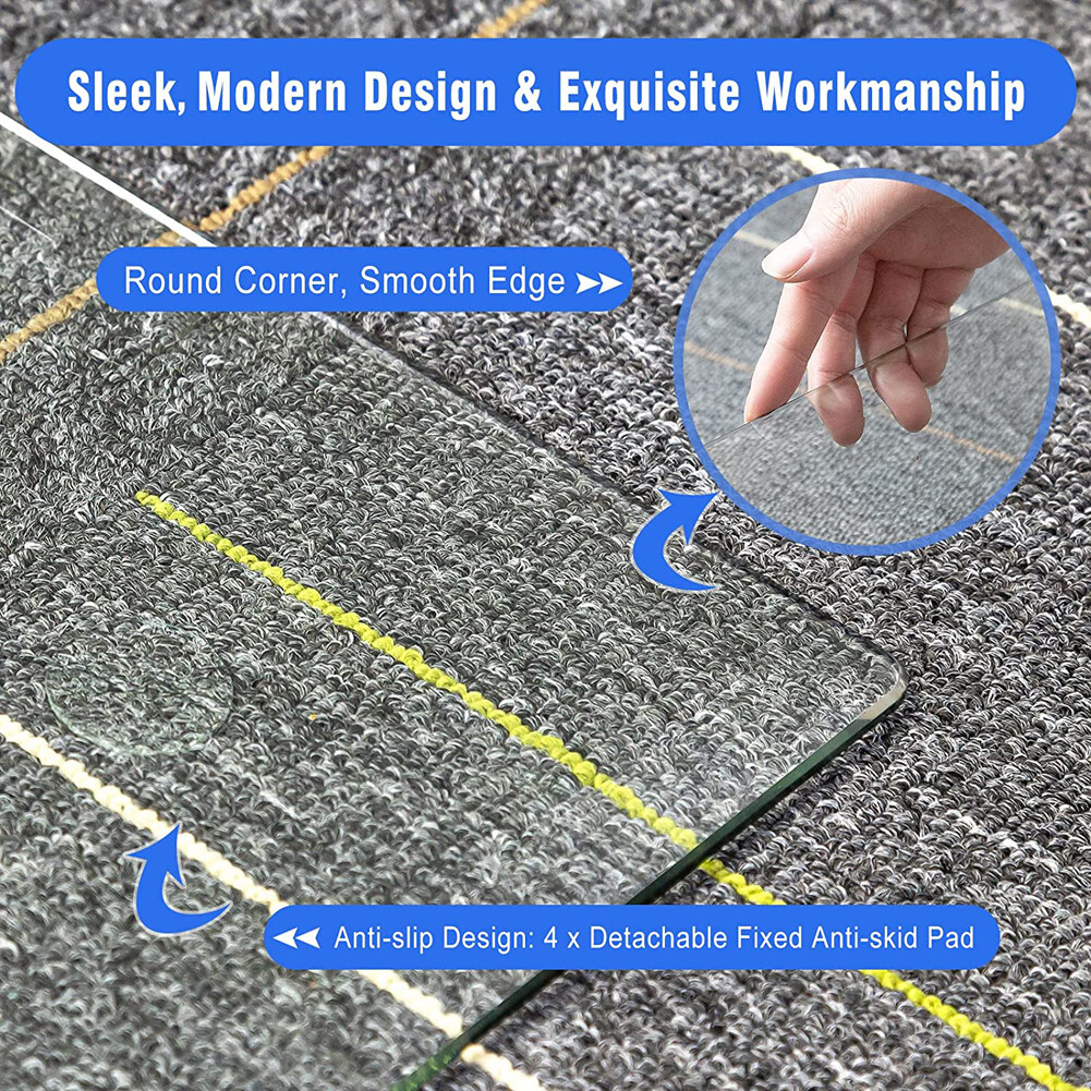 This glass chair mat is a game-changer! The sleek, sturdy design glides smoothly on both carpet and hardwood floors, while the anti-slip pads keep it securely in place. It protects floors from scratches and adds a modern touch to any workspace. Highly recommend for durability and style!