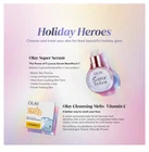 Olay Holiday Glow Kit - 1 Super Serum + Vitamin C Cleansing Melts Gift Set. Help their skin look merry and bright with the ultimate Olay skincare gift set! It's complete with Olay Super Serum Mini face serum and Olay Cleansing Melts facial cleanser for a powerful two-step stocking stuffer. Super Serum:Get that holiday glow with Olay's Super Serum, an anti-aging serum that's packed with five powerful ingredients: Niacinamide, Vitamin C, Collagen Peptide, Vitamin E, and AHA. It helps with skin texture, evenness, firmness, hydration, and smoothness-that's 5 benefits in 1, with visible results that beat the #1 luxury serum. In fact, 94% of people said their skin felt smooth after the first use, making it the gift that keeps on gifting.How to Use:1. Before using, wash away impurities, makeup and oils to prepare your skin2. Apply your Super Serum to face and neck after cleansing3. Follow up with your favorite Olay moisturizer and use SPF during the dayCleansing Melts:Looking for that perfect gift for mom? Olay Cleansing Melts are sure to melt their heart. It cleans, tones, and refreshes for a 3X better clean. When you need a bit of pampering after the holiday hustle and bustle, this water-activated daily cleanser offers up a spa-like luxurious lather with micro-bubbles, refreshing your skin right on time for the new year. Whether you're shopping for your loved one or just looking for an excuse to treat your skin-this brightening face wash is sure to spark a smile.How to Use:1. Soak - gently add water and let dissolve for 3 seconds2. Activate - Rub hands to create a rich, creamy lather3. Wash - Massage onto faceAt Olay, we're serious about our commitments. • HOLIDAY GLOW GIFT BOX: Get the perfect stocking stuffer or skincare gift with two Olay products. • OLAY SUPER SERUM: 5-in-1 powerful serum that helps with skin texture, evenness, firmness, hydration and smoothness. • VISIBLE RESULTS: 86% agree that Olay Super Serum leaves skin with a visibly healthy glow after 2 weeks. • Olay Cleansing Melts cleanses to remove makeup, oil, and SPF. • COMPLETE YOUR ROUTINE: Start with Cleansing Melts then use Super Serum, followed by an Olay moisturizer and SPF