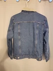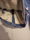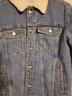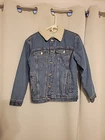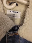 This Old Navy denim jean jacket is the perfect addition to any child's wardrobe. The jacket features a button front closure, sherpa-style lining, and a mid-length fit. The blue denim material and solid pattern make it a versatile piece for any occasion, while the Western and outdoor themes add a touch of style to the jacket.