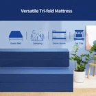Olee Sleep 4 Inch Blue Tri-Folding Memory Foam Mattress provides the perfect solution for guests, children, camping, and more. We create a dual layer structure for maximum comfort and reliability. Cooling gel memory foam provides heat transfer and temperature regulation. Its high responsiveness allows the soft foam to quickly adapt to body shapes and movements, for pressure relief and motion isolation. High density foam gives support, maintaining the integrity. The durable, washable, polyester jacquard fabric wicks moisture and protects mattress against dust and debris, giving you the safest comfort. The folding mattress provides exceptional comfort and support. Foldable feature makes for efficient portability and easy storage. With perfect motion isolation, supportive design, and temperature regulation, Olee Sleep's mattress guarantees the best sleep quality you've ever experienced. Olee Sleep's vision is to elevate sleep experience by incorporating proprietary technologies and innovative solutions that boast exceptional quality and offer unique features. Material - Polyester Jacquard: 100% polyester washable cover provides breathability, moisture-wicking, and dust protection. - Cooling (I-Gel) Memory Foam: Cool gel infused memory foam technology designed to keep temperature cool through the night. - High Density (HD) Foam: High density foam & memory foam synergy provides enhanced support and top comfort experience. Product's Certifications - CFR 1632: Certification of mattress for standard flammability resistance. - CertiPUR-US: Certification of polyurethane foam for indoor emissions, product performance, physical durability, and environmental responsibility. - OEKO-TEX: Certification of textile product for human and natural ecosystems safety. Product comes with a 5-year Manufacturer Warranty. [ Dimensions ] - 78 x 38 x 4 inches [ Dual Layer ] - 1" Cooling Gel Memory Foam + 3" High Density Foam [ Compact & Portable ] - Foldable mattress design offers efficient portability and easy storage in all types of environment [ Multi-purpose ] - Perfect versatile bed for temporary sleeping solution, from guest bed to playroom, and from camping to road trips! [ Comfort & Support ] - Soft cooling gel memory foam adapts to body contours and regulates temperature, while durable high density foam guarantees stable support and uniform weight distribution [ Washable Cover ] - 100% polyester grey jacquard fabric resists wrinkles and enhances durability, ensuring the CertiPUR-US certified mattress topper is both breathable and protected against moisture, dust, and debris [ Bed-in-a-Box ] - Smart shipping & delivery with vacuum-sealed packaging technology. Please allow the product to rest in room temperature for 72 hours to fully expand and recover