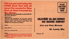 Oliver Oil-Gas Burner & Machine Company St. Louis MO 1923 Mail Order Postcard Item may have wear, creasing, or light staining typical of vintage & antique postcards - please inspect photos closely to determine the condition of this listing. All postcards priced at $20 and under are shipped via eBay Standard Envelope; all postcards above $20 will be shipped via USPS First Class. Combined shipping is provided on orders of multiple postcards. If you're unsatisfied with your order, The Possum Lounge accepts returns within 30 days of initial purchase. Feel free to message us if you have any questions!