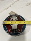 Discover the charm of the Olivia & Gracie Enameled Keepsake Box, a unique treasure that combines the whimsy of a nutcracker theme with the elegance of a mirrored finish. This large, round trinket box is crafted from durable metal, adorned with vibrant multicolor enameling that brings the festive spirit of Christmas to any setting. The box features a hinged closure, ensuring your valuables are secure while displayed. Its reflection-capturing mirrored surface adds a touch of sophistication, making it not just a holder of keepsakes but a keepsake in itself. Perfect for the holiday season or as a year-round accent piece, it celebrates the art of boxing with a timeless appeal. Please note spot on interior surface-see last photo.