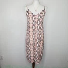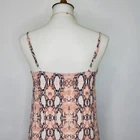 One Clothing Los Angeles Snakeskin Sleeveless Button Front Dress Size S Pink gray cream reptile print dress Adjustable spaghetti straps Button up front w/material panel behind buttons Textured 3/4 lined Chest darts Wear alone or layer Summer dress Dress up or down Not stretchy Pictured on woman's Small dress form Notice: Color may differ from your computer, phone or device display Buttoned relaxed flat lay measurements are approximate, fit not guaranteed. Pit to pit: 17" Back Length down center: 31" Width front side to side at 6th button: 18" AA805B M52422 9106 **7.2oz 50424 EBMP1 snakeskin print dress reptile print dress spaghetti straps summer dress