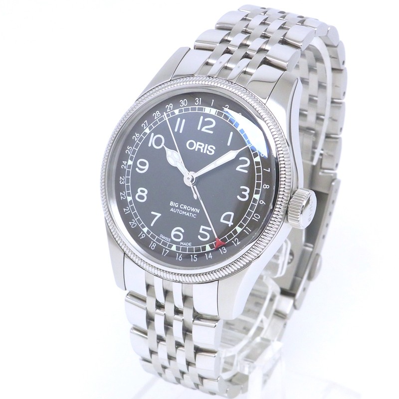 This Oris Big Crown Pointer Date is a stunning timepiece with a sleek gray dial and automatic movement. The vintage-inspired design gives it a timeless appeal, and the used condition adds character. Great for watch enthusiasts looking for a unique piece with Japanese craftsmanship. Be sure to ask about sizing and specifics—it's worth the inquiry!