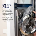 My dog absolutely loves this bed! The memory foam is super supportive, and the faux fur is so soft—he won’t leave it. It’s also stylish and blends perfectly with my home decor. Super easy to clean, and the waterproof liner is a lifesaver. Worth every penny for the comfort and quality!