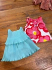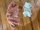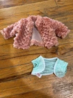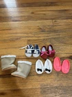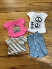 The Our Generation Clothing Outfit Lot is a collection of 29 pieces designed to fit American Girl dolls. This multicolor outfit set includes various clothing items such as a cheer dress and 2 Pom poms, 2 long pants, 1 skirt, 2 dresses, 1 pink coat and a teal shawl, 2 long sleeve tops, 4 short sleeve tops, a purse, a pair of sunglasses, and 5 pairs of shoes. Made of cloth material, this clothing lot is ideal for play dolls and specifically tailored for 18-inch girl dolls. All in great condition.
