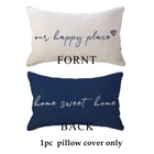 NICE ARTISTIC TOUCH,LIGHT UP YOUR LIFE! --------------------------by ULOVEYOURSELF THROW PILLOW COVERS ❤Specification ✔Reversible Throw Pillow Covers ✔Front:Our happy place ✔Back:Home sweet home ✔Size:12×20 Inches(30×50cm) ✔Made of durable and environmentally friendly polyester burlap materials. ✔Hidden zipper design, appears well constructed. ✔Vibrant colors,easy to match bed, couch, sofa, car, or chair. ✔Both indoors (living room, office,bedroom, etc.) and outdoors (patio,car etc.) use. ✔Great gift idea for friends and family. ❤Warm Tips 1.Due to the handmade and manual measurement, please understand there may be 1-2cm deviation exist. 2.Due to the lighting and monitors,there are slight difference between the picture and the real item. 3.Please note:the pattern is one side only , the back is linen beige color without printing. ❤Washing Tips 1.Machine Wash Cold Separately; 2.Gently Cycle Only; 3.No Bleach; 4.Tumble Dry Low; 5.Do Not Iron, Low Temperature If Necessary. ✔1pc lumbar pillow cover only,No Filler/Insert.12×20 inches (30×50cm)rectangular cover/shell, used for 12×20 inches inserts. ✔Home sweet home decorative cushion covers with vivid colors to choose ,add more life and fun in your throw pillows.(pls note:Inserts are not included and the pattern paint one side only). ✔Durable for both indoors (living room, office,bedroom, etc.) and outdoors (patio,car,porch etc.),easy to match your sofa, couch & other pillows.It’s a great home decor for your personalized style. ✔Family quotes decorative pillow covers,add interest and warm to your home.And keep your pillows clean and against scratch, finger marks.Also,it’s a great gift to your family and friends. ✔ULOVEYOURSELF blue reversible throw pillow covers is a work of art than a simple home decor item. And we monitor every step of the process From design, printing quality, sewing and packing, just to make sure that you will receive a high quality product.