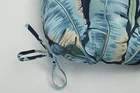You may not be lying under the palms, but you can pretend you are with Tortola Midnight Blue. Featuring bold jungle leaves and delicate palm fronds in cool turquoise blues and greens on a navy blue ground, this print will look beautiful on your screened in porch, next to your pool, or under your head as you swing in your hammock. Tortola Midnight Blue was created to be paired with a number of other patterns and solids and is available in a variety of pillow/cushion shapes and sizes. Set of (2) seat cushions Measures: 16-inch length X 15.5-inch width X 4-inch depth (measurements may vary up to 1-inch since item is handcrafted), and requires a break in period of 3-4 hours use to reach desired size. Luxurious and plush feel makes any seat more inviting Recycled polyester fiber fill is plush, comfortable, and long-lasting; sewn seam closure rear reinforced 14" ties make it easy to attach cushions to furniture and keep them neatly and safely in place Made in the USA