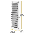 You may also like 2 Pack Shoe Storage Cubby 16 Compartment Stackable Organizer Closet Entryway New 53.75 USD 57.18 USD Free shipping 6% off Shoe Storage Cubby Bench Organizers Foyer Mudroom Composite Wood 18 pair Brown 136.2 USD 144.89 USD Free shipping 6% off Modern 2-Door Wooden Shoe Storage Cabinet W/ 3 Shelves Entryway Organizer New 82.84 USD 88.13 USD Free shipping 6% off While using that dead space behind your door, Mainstay's 36-Pair Over-The-Door Shoe Organizer holds up to 36 pairs of shoes on display to easily find what you are looking for. The unique metal and tear-resistant mesh design optimize durability and functionality. The mesh-lined back prevents shoes from falling out while protecting the door from scuffs. The adjustable over-the-door hooks accommodate varying door sizes. This shoe rack is made to last, with strong yet breathable fabric and reinforced seams. These elegant shoe shelves are made of a high-quality metal frame with a Gunmetal finish that matches most décor styles. This shoe organizer offers the option to be permanently mounted to a door or wall. Some assembly is required with the tools included. Assembled Dimensions: 7. 5 L x 21. 63 W x 69. 0 H inches. 12-Tier over the Door Shoe Rack for 36 Pairs, Metal, Gray This over-the-door shoe rack is made of an epoxy-coated gunmetal frame Mesh-lined back prevents shoes from falling out while also protecting the door from scuffs Unique metal & mesh design combination optimizes durability & functionality Assembled Dimensions: 7. 5 L x 21. 625 W x 69. 0 H inches Easy assembly with the tools included Stores up to 36 pairs of shoes Made to last, with strong yet breathable fabric and reinforced seams Modern Decor Style Style# MS89-565-009-05 You may also like 2 Pack Shoe Storage Cubby 16 Compartment Stackable Organizer Closet Entryway New 53.75 USD 57.18 USD Free shipping 6% off Shoe Storage Cubby Bench Organizers Foyer Mudroom Composite Wood 18 pair Brown 136.2 USD 144.89 USD Free shipping 6% off Modern 2-Door Wooden Shoe Storage Cabinet W/ 3 Shelves Entryway Organizer New 82.84 USD 88.13 USD Free shipping 6% off