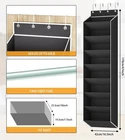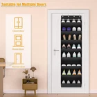 8 shelves over the door shoe organizer:fit 16-24 pairs shoes.door shoe rack with deep pocket that can hold size 13 shoes and boots without trouble.This door shoe storage organizeris not only suitable for hanging behind the bedroom door to store shoes, can also be hung on the closet door to store wraparound towels clothes gloves and other items; can also be hung on the bathroom door to store some toiletries, or hung on the pantry to store some food, and even can be placed in the nursery room to put some burp wipes, diapers, toys Enough Capacity: The hanging shoe rack has eight shelves, which can provide plenty of space for organizing shoes, each row can accommodate two pairs of shoes in paralleli,cluding slippers, high heels, sneakers, boots or children's shoes..The dimension of the over the door shoe rack is: 67.7"L x 16.5"W x7.7"D Attension Design: The pockets of the door shoe rack declivitous open design, allow for easy viewing, enabling you to effortlessly locate and access your stored items with a simple reach. The shoe holder for door With 8.7'' deep slanted pockets, it is large enough to hold shoes from size 7-13, making shoes don't fall off easily No sagging and deformation: No Sagging and Deformation: The shoe door organizer is made of premium fabrics, that is dust-proof, moisture-resistant, good tear-resistant, breathable and with long life-span. Firm fiber tubes are sewn inside the back of door shoe organizer to make it more load-bearing and prevent it from sagging due to extrusion and deformation Sturdy and reliable: The shoe rack door comes with 4 sturdy metal hooks that can hold up to 60 pounds. The hooks will fit doors from 1.37" to 1.65". Door shoe organizer hanging is perfect for most standard and narrow doors such as storage rooms, closets, college dorms, bedroom doors, laundry rooms, garages, etc Multifunctional Use: This hanging closet shoe organizer , with its layered vertical storage space hanging behind the door, not only neatly organizes various shoes to protect your privacy but also can store baby items, kids' toys, cleaning supplies, hats, scarves, gloves, accessories, etc., freeing up more room in your living space