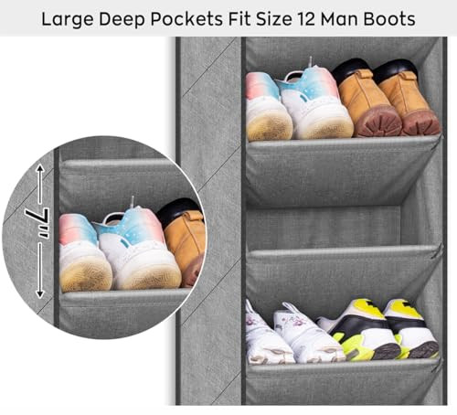 Return Policy Fast Delivery Trusted seller Over The Door Shoe Organizer for Closet with Large Deep Pockets, Narrow Shoe Rack for Door Hanging Boots Storage, Grey Product Description 【8 Shelves with Large Capacity】: This narrow over the door shoe organizer is great for small space, like closet, dorm, wardrobe and pantry room, laundry room. Its dimension is 64.5"L x 16.7"W x 9"D yet it’s able to hold up to 20-22 pairs of shoes; 【Extra Large Pockets】: Each pocket of door shoe rack for closet is with 16.7''W x 9''D x 7''H. The 9'' depth is enough to hold size 7-13 shoes and you could put two pairs of size 11 sneakers or tennis shoes together even could hold size 12 boots without sagging or stretching; 【NO Squeezing & Premium Oxford】: The sturdy fiber tubes could prevent gray over the door shoe rack from squeezing and avoid deformation and enhance the stability of the pockets. Our hanging shoe organizer made of high-quality oxford fabric which have great tear resistance and much more sturdy than ordinary mesh or non-woven pockets; 【Easy To Take Out】: The special up open design is convenient for you take from the deep pouches and both sides are closed could keep the shoes stay in the hanging shoe rack for closet without falling out; 【Meet Versatile Needs】: Shoe holder for back of door not only for shoes, but also for bathroom stuff, hair products, hats, scarves, gloves, toys, toilet paper, water bottles and it can be hung in cruise, rv, wardrobe, pantry door, laundry room. etc. Shipping Returns Payment Shipping Shipping is FREE to all addresses other than APO/PO boxes in the lower 48 states. All our stock ships from US-based warehouses. Shipped via USPS or UPS (depending on location and package weight) Unless stated otherwise, all orders will ship within 24-72 hours of your payment being processed. Check our feedback to see the great reviews of FAST shipping we offer. Returns Seller does not accept returns Payment We currently accept payment via eBay managed payments only. Once payment is cleared, we will dispatch your shipment within 1-3 business days. Please refer to the "Shipping" tab for more information regarding shipping speed to your destination.