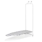 Over-The-Door Ironing Board is the ideal solution for storing and using an ironing board when space is limited. The steel frame construction hangs over most doors and folds closed to 1.25 inches so it’s hidden and out of the way. Simply pull down the top to open the ironing surface until it snaps in place. A simple release lever allows the unit to fold easily for storage. The durable 100% cotton cover withstands high heat and the thick foam pad comes standard for a smooth ironing surface. The Over-the-Door Ironing Board is perfect for apartments, dorm rooms and second homes. SPACE SAVING DESIGN with over-the-door hooks that fit door sizes up to 1.5” thick. Great for home, dorm, apartment living or any place where a space-saving solution is desired. GENEROUSLY SIZED ironing surface measures 42" x 14" with all natural 100% cotton cover and 7mm foam pad EASY OPEN-CLOSE FUNCTION simply pull down for use and press lever to close STABILIZING FOOT CAPS rest against door so board doesn’t move while ironing STEEL MESH VENTED TOP for optimal steam flow
