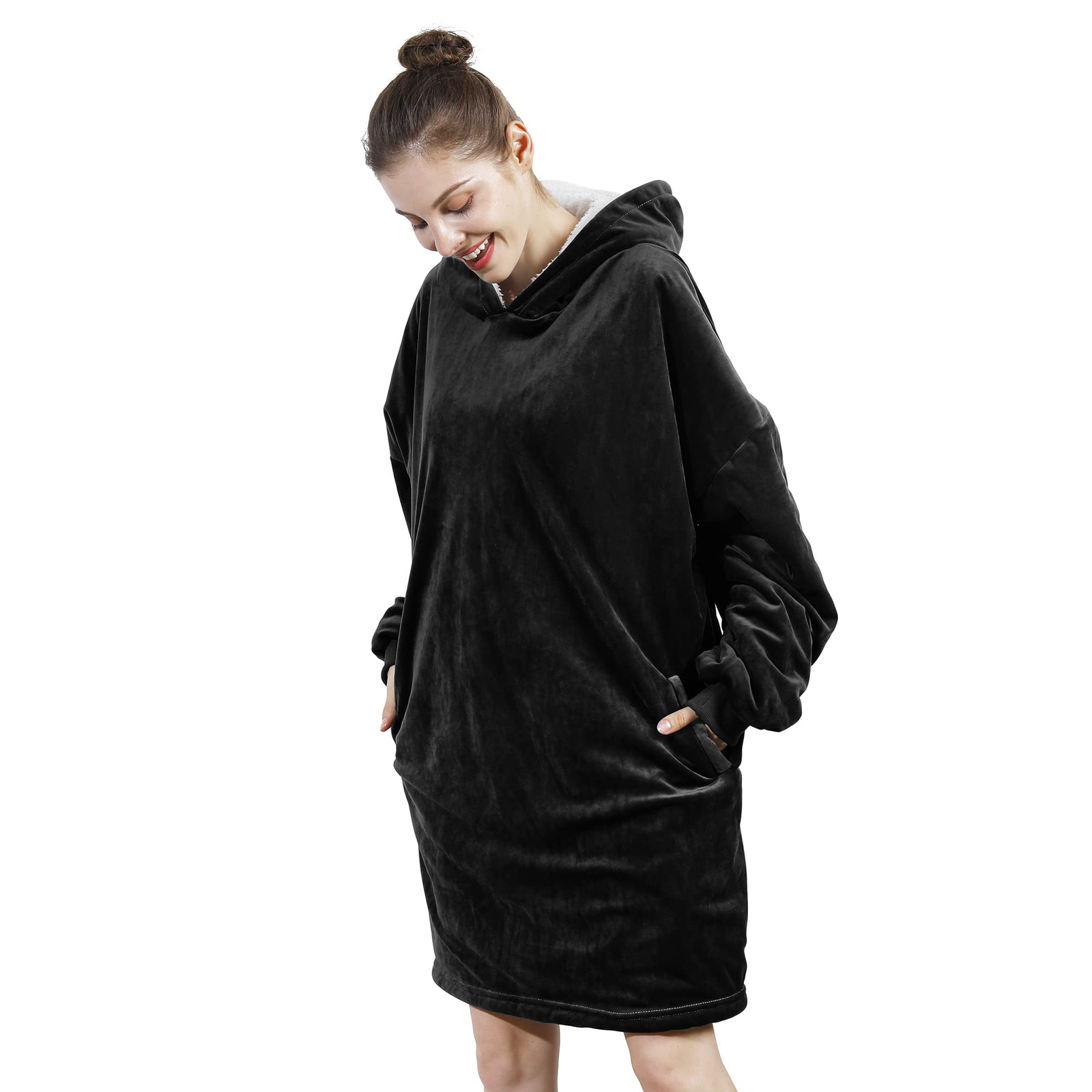 [Autumn Winter Essentials]- Are you still afraid to go out because of the cold? With this blanket sweatshirt, you can say goodbye to the cold. Because our sweatshirt blanket is made with super soft microfiber fleece on the front and Sherpa lining on the other. While providing you with warmth, let you free yourself without hindrance. [Multifunctional Purpose]- The blanket sweater is not limited to indoor reading, watching TV, blanket sweater can be used for outdoor sports, sports events, camping, beaches and almost any place and used as school uniforms, girlfriends clothes, couples clothes, parent-child clothes, warm pajamas. In this way, you can share warmth and joy with your friends, lovers, and family together. [Moving Wearable Blanket]- The wearable blanket adult is equipped with giant front pockets that can store your mobile devices, such as phone, remote controls, also snacks. The blanket with sleeves, oversized hood, elastic cuffs and wide neck design which allow you to move your limbs and body easily. It can be used as girlfriend gifts, boyfriend gifts, wife gifts, husband gifts, best friend gifts, business partner gifts, kids wearable blankets gifts and so on. [One Size Multi Color Fit All]- Our hooded blanket is one size for adults and teenagers, but hooded blanket has different colors optional. Both men and women are suitable. Welcome to buy, please refer to the product details for specific colors, there is always a color for you. It is the best gifts choice, can be birthday gift, funny gifts, cute gifts, unique gifts, gag gifts, anniversary gifts, sloth gifts. [Washing Instructions]- Hand wash or machine wash with cold water. Wash separately before using blanket sweatshirt for the first time. At important festivals or moments, sweatshirt blanket fleecehug hoodie is the best choice for College gifts, Christmas day gifts, Thanksgiving day gifts, Valentines day gifts, Halloween day gifts, Mothers day gifts, Father day gifts. Let the warmth always be with everyone.