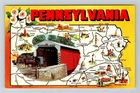 PA-Pennsylvania, View Map, Landmarks, Covered Bridge Vintage Postcard