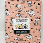 PEANUTS Snoopy QUEEN SHEETS SET Woodstock Day In The Life Peach Pink / Orange