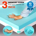 3 INCH MEMORY FOAM MATTRESS TOPPER : Crafted from premium memory foam and removable cover, this mattress topper king conforms to the natural curves of your body, relieving pressure points. The 3-inch thickness offers the perfect balance of cushioning and support, allowing you to sink into blissful slumber without feeling enveloped or trapped. Designed to enhance the feel of any mattress, this king mattress topper can revitalize an aging mattress or add an extra layer of plushness to a newer one. SUPPORTIVE & PRESSURE RELIEF : Crafted from premium, high-density memory foam, this king size mattress topper molds perfectly to the contours of your body, providing support and pressure relief for your back, spine, hip, neck, and shoulders. And this mattress topper king size bed helps reduce tossing and turning by evenly distributing your weight and minimizing motion transfer. COOLING MATTRESS TOPPER KING : The memory foam mattress topper king has a breathable and cooling covering, which helps dissipate heat. And open-cell structure of memory foam promotes airflow freely, preventing the buildup of heat and moisture, keeping you cool and comfortable throughout the night. FIBERGLASS FREE CertiPUR-US FOAM : Crafted from 40D high-density, temperature-sensitive memory foam, certified by CertiPUR-US which compliant with human health standards for content, emissions and durability. OEKO-TEX WASHABLE COVER : Certificated by OEKO-TEX, our hypoallergenic and organic removable cover is soft, breathable and cooling feel. Maternal-Baby Product Level material, which suitable for sensitive skin person and children. JUST RIGHT FIRMNESS : Our king size mattress topper memory foam is dual-layer foam combination design: the white-color supportive foam, and softer memory foam. The firmness level can be adjusted by flipping over the different foam side. 120-night sleep trial, featuring the provide you "just right" firmness! EASY CARE : The removable, machine-washable cover makes it easy to keep your mattress topper fresh, promoting a clean and hygienic sleep environment. While, the corner elastic straps and anti-slip backing to prevent sliding. IMPORTANT : As a enterprise that has deeply involved in the mattress topper for over 10 yrs. We are fully aware of customers' concerns regarding purchasing vacuum compressed mattress topper online, as it can be challenging to repackage and return. We offer worry-free refunds or replacement, without requiring return item under this cases: Any product issues, and all other defective not caused by customer, please contact us firstly for any support.