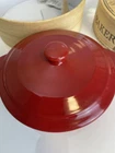 Introducing the Petit Maison Red Brie Cheese Baker Baking Dish - the perfect addition to your kitchen. This round-shaped ramekin is made of ceramic and is ovenproof, making it the ideal tool for baking and serving your favorite Brie cheese. With an item length of 7 inches, item depth of 2 inches, and item width of 5.5 inches, this baking dish is the perfect size for individual servings. The red color and ceramic surface coating add a touch of elegance to your table setting. The set includes one baking dish, making it a great gift for the cheese lover in your life. Elevate your cheese game with the Petit Maison Red Brie Cheese Baker Baking Dish.