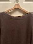 PRE-OWNED ALFANI WOMEN'S BOAT NECK TUNIC SWEATER DETAILS: BROWN SMALL EXCELLENT CONDITION RIBBED ACCENT ALONG NECKLINE & SLEEVES 60% COTTON/40% RAYON