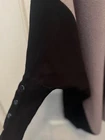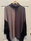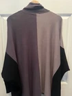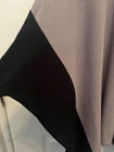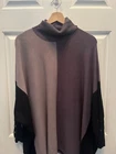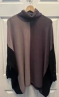 PRE-OWNED ALFANI WOMEN'S COLOR BLOCK TURTLENECK PONCHO SWEATER DETAILS: Color Block Gray & Black Petite Small Turtleneck Ribbed cuffs with button trim; handkerchief hem Long dolman sleeves Poncho fit 100% Polyester Machine Washable