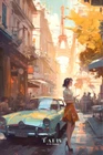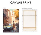 Painting Of Woman on Street & Vintage Car 40x60cm Canvas or Metal Print Wall Art