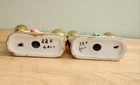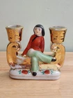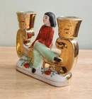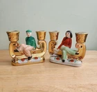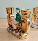 Both measure 4 in wide and a little under 4 in tall. The part that the candle goes in measures about 1 in across and a little under 1 in deep. There is a lot of paint loss as shown in photos. The bottoms are marked "22 k gold' and appears to have "made in japan", but someone has crossed this out.